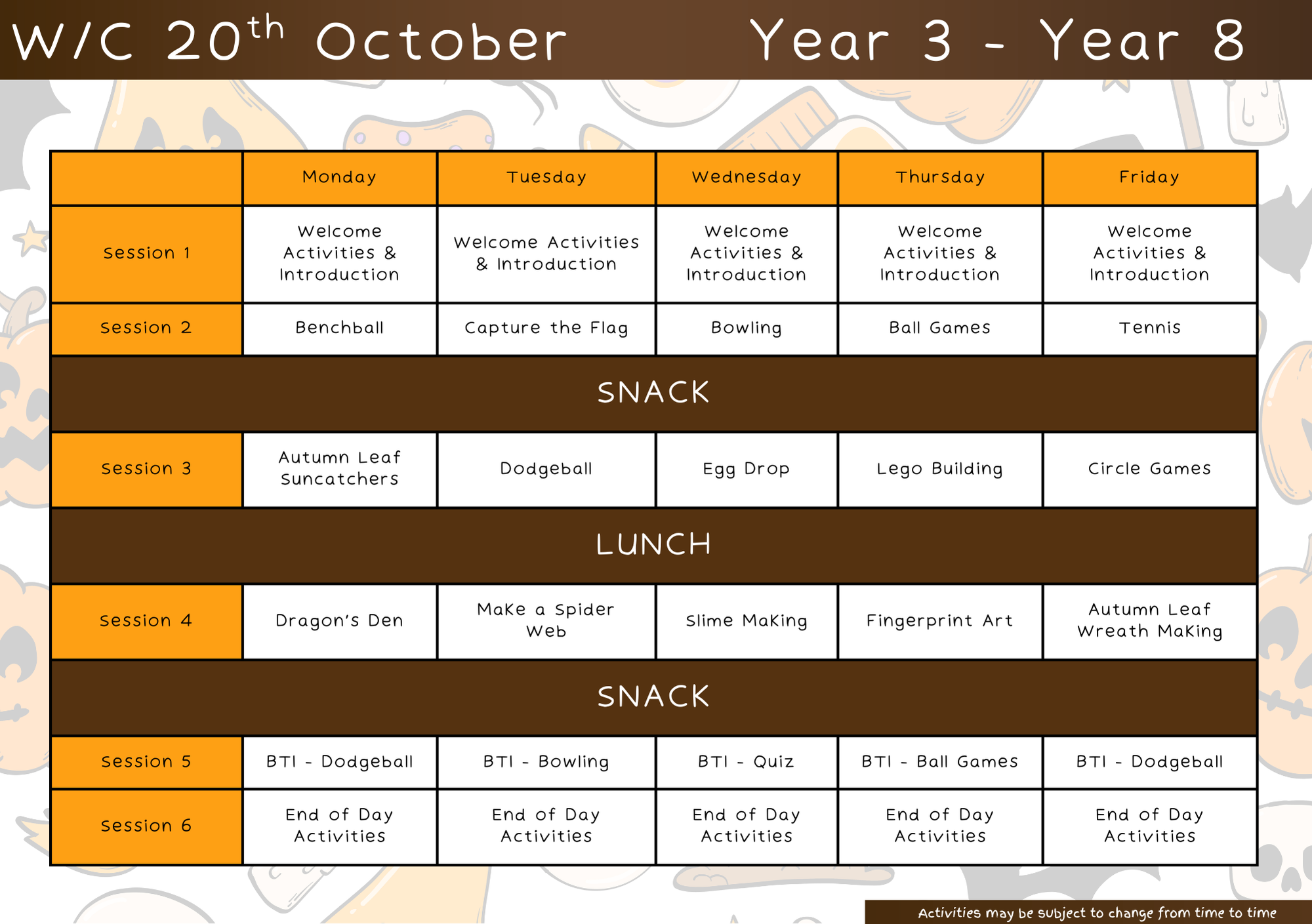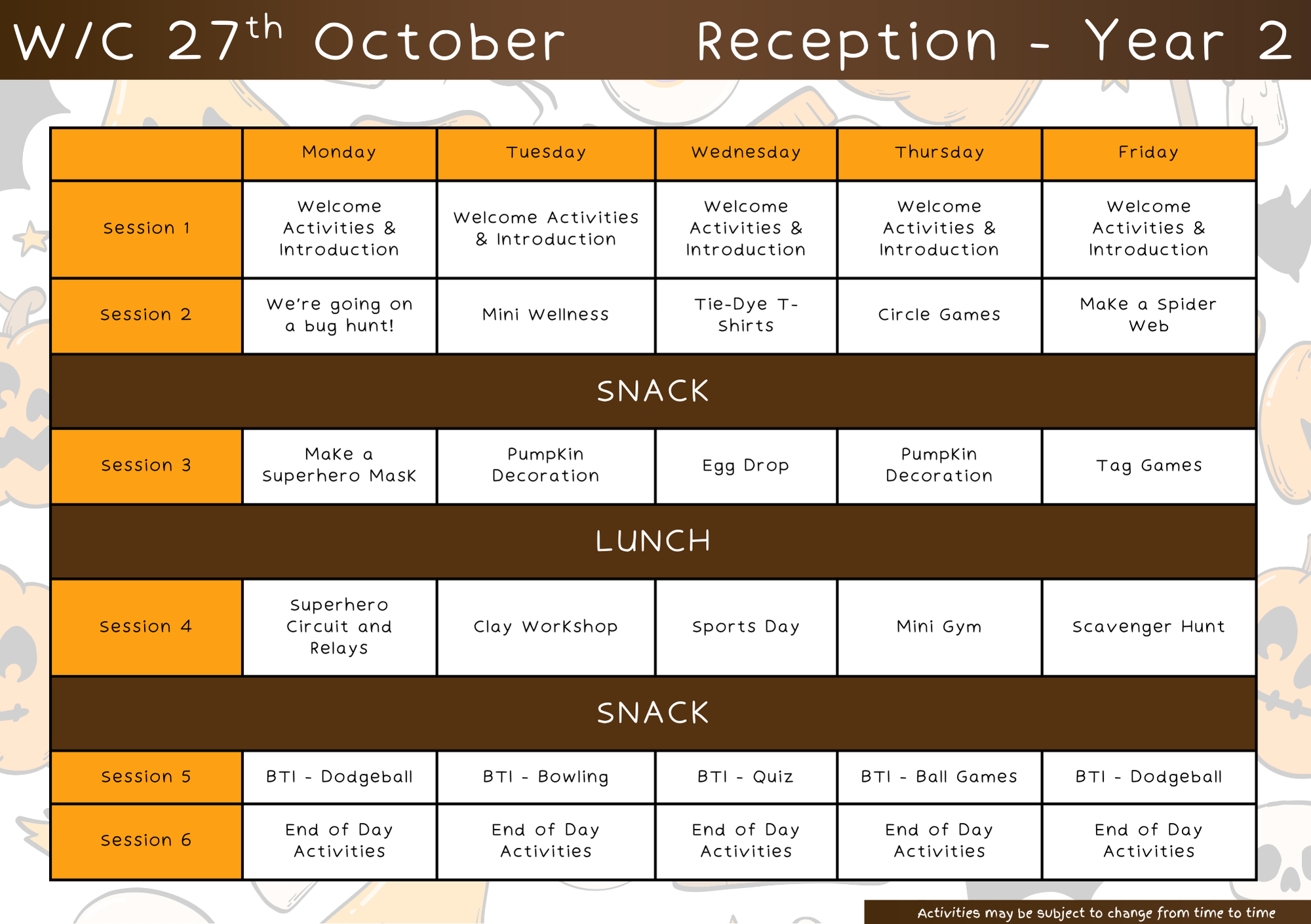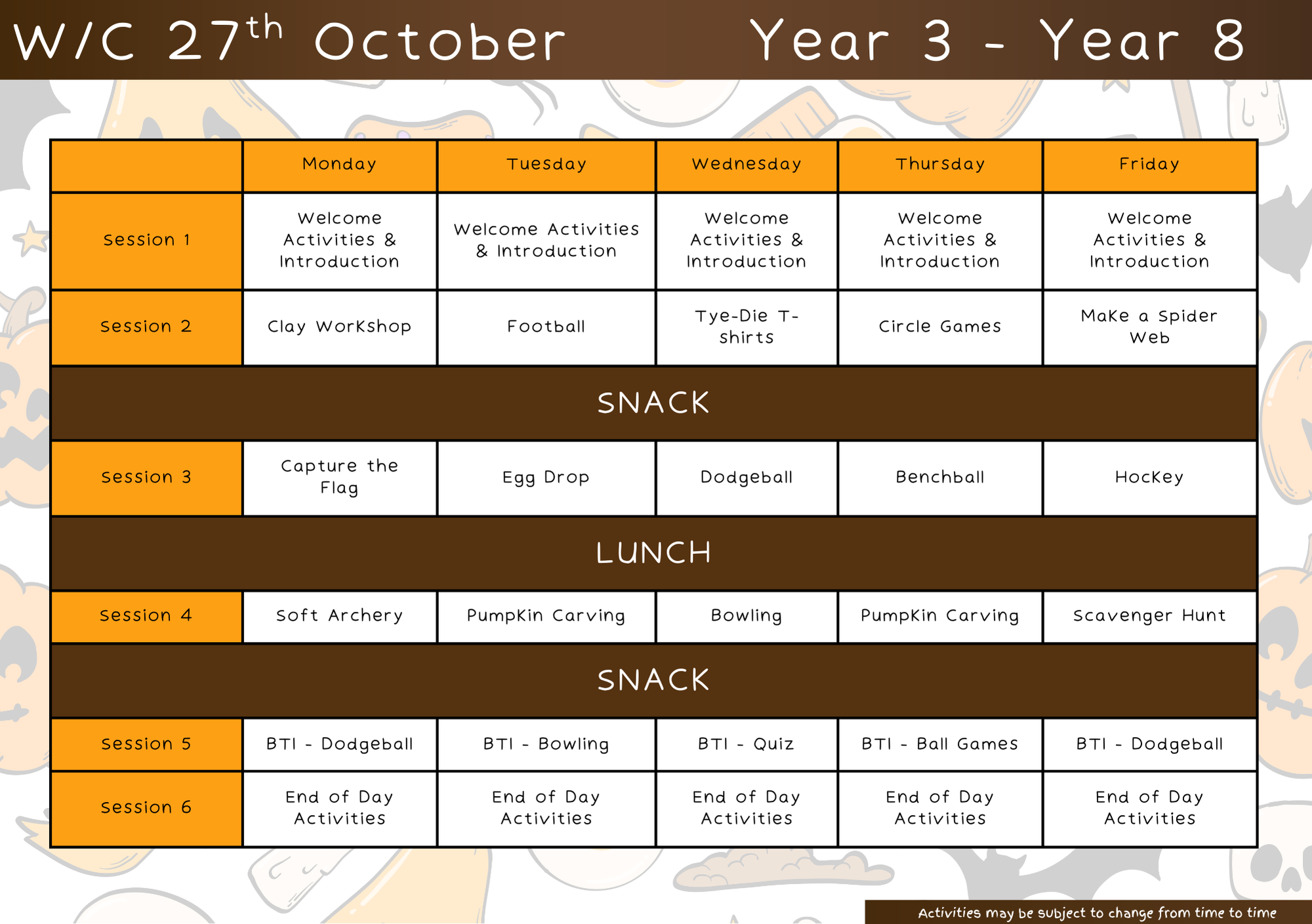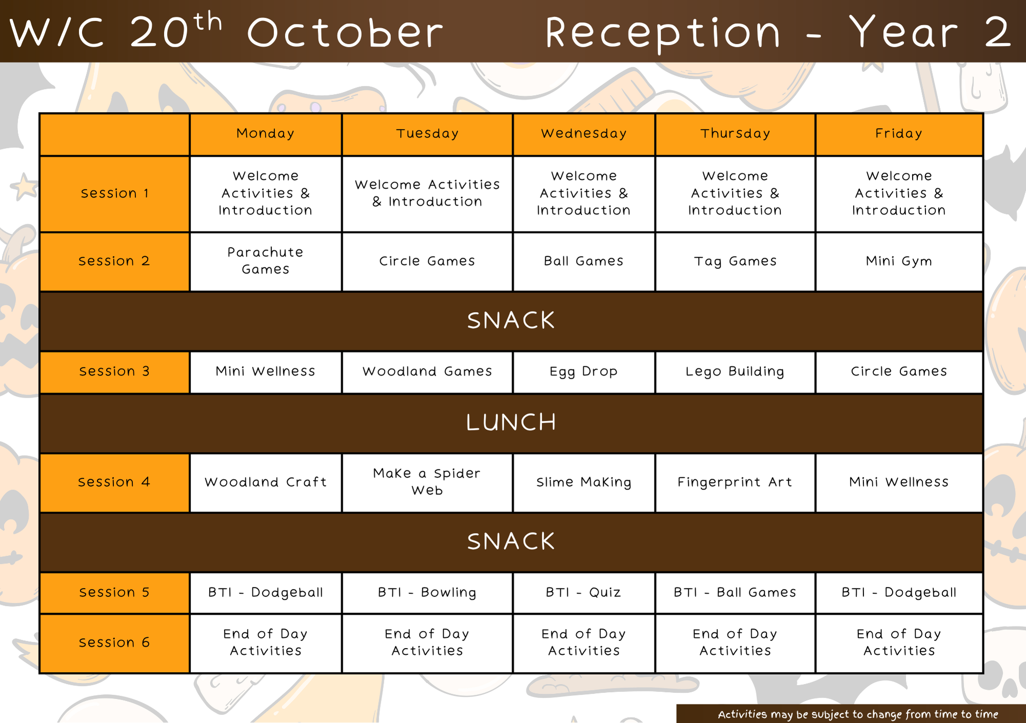 - Varied sessions (sport, team challenges, crafts, drama & amp; more)